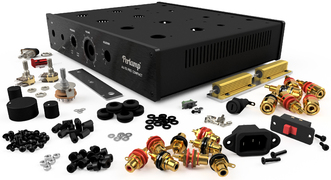 W komplecie do obudowy dołączone części mechaniczne i elektryczne. Oferowany zestaw do samodzielnego montażu nie zawiera płytek PCB, transformatorów i lamp.