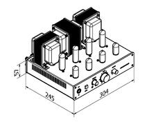 W komplecie do obudowy dołączone wszysytkie części mechaniczne i elektryczne włącznie z płytkami, transformatorami i lampami. Oferowany zestaw zawiera w pudełku zestaw wszystkich części potrzebnych do zbudowana kompletnego wzmacniacza.